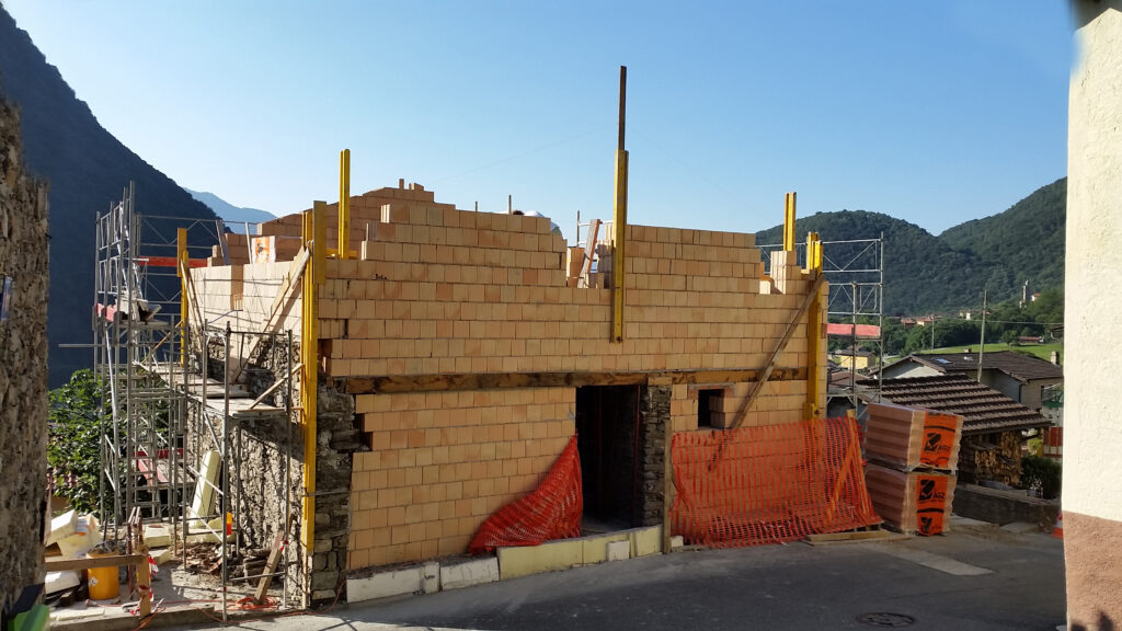 Immaginiamo un muro in mattoni: l’acqua serve per l’estrazione della materia prima – l’argilla – che già ne contiene parecchia; poi per la lavorazione dei mattoni fino ad ottenere la forma desiderata; dopo l’essicazione o la cottura ad alta temperatura parte dell’acqua resta a far parte della struttura molecolare del materiale. I mattoni vanno poi posati, ancora con l’ausilio dell’acqua per la malta, oppure – buona pratica non più in uso – per saturare i mattoni stessi in modo da non “bruciare” la malta sottraendole l’acqua, per ottenere una migliore coesione della muratura. Oppure pensiamo al calcestruzzo: quello moderno a base di cemento portland è originato da processi analoghi a quelli dei mattoni, con l’acqua protagonista nelle fasi d’estrazione e lavorazione (estremamente inquinante) della materia prima per il cemento, e poi per la confezione in cantiere, dove occorre idratare il legante per farlo indurire. Lo stesso avviene per il gesso e la calce aerea, la cui lavorazione richiede acqua; l’indurimento avviene però con l’esposizione all’aria. Strutture portanti, murature, massetti per pavimenti, intonaci e rivestimenti, sono tutti elementi confezionati con l’acqua: quella eccedente dopo le diverse reazioni di indurimento si disperde lentamente nell’ambiente: la regola empirica dice che una costruzione nuova impiega circa due anni – salvo difetti – per essere completamente asciutta.